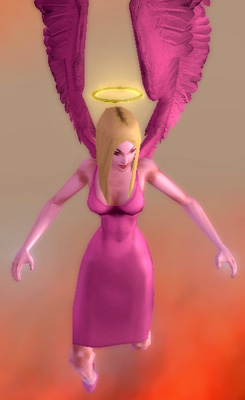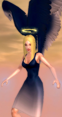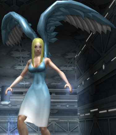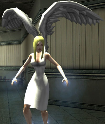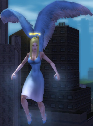 When I got her to level 20 and got the second costume slot, I designed an angelic costume for her, on a whim. I played her in large teams shortly after that, and found that this was where she shone, not as a solo character. I was amazed at how well her power sets fit into the concept of a “guardian angel”—-she can fly, heal, and protect her fellow teammates by shooting down and knocking back enemies.
